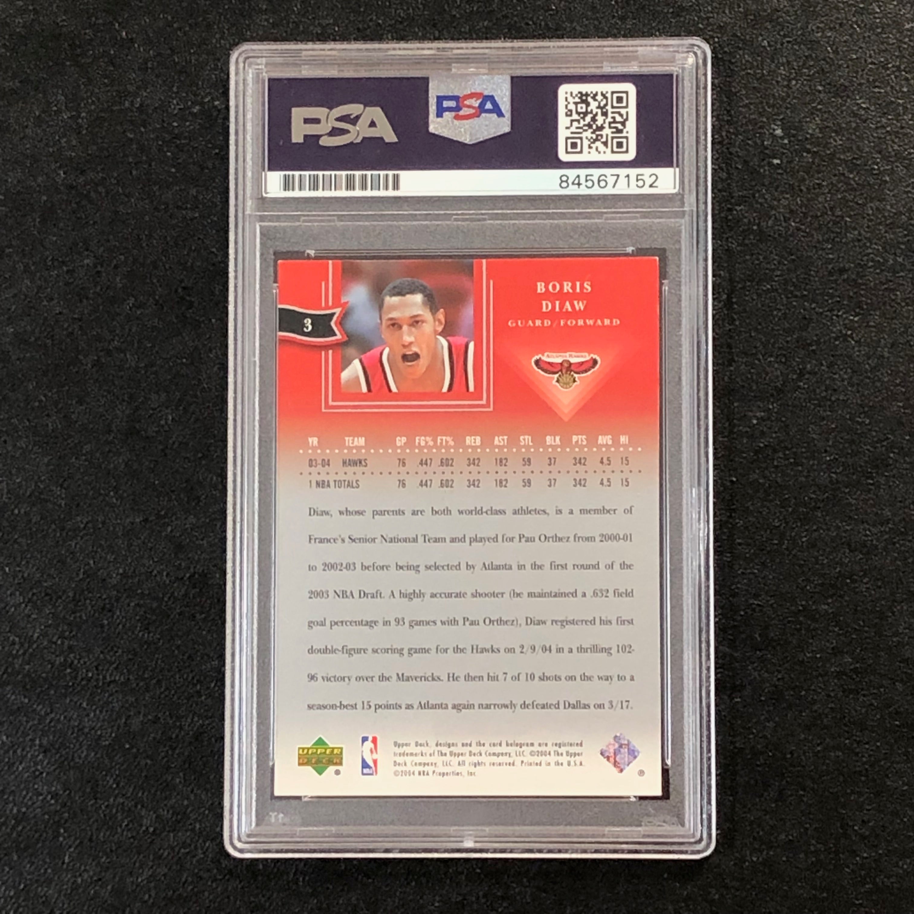 Chic 2004-05 Upper Deck All-Star Lineup #3 Boris Diaw Signed Card AUTO 10 PSA Slabbed Hawks