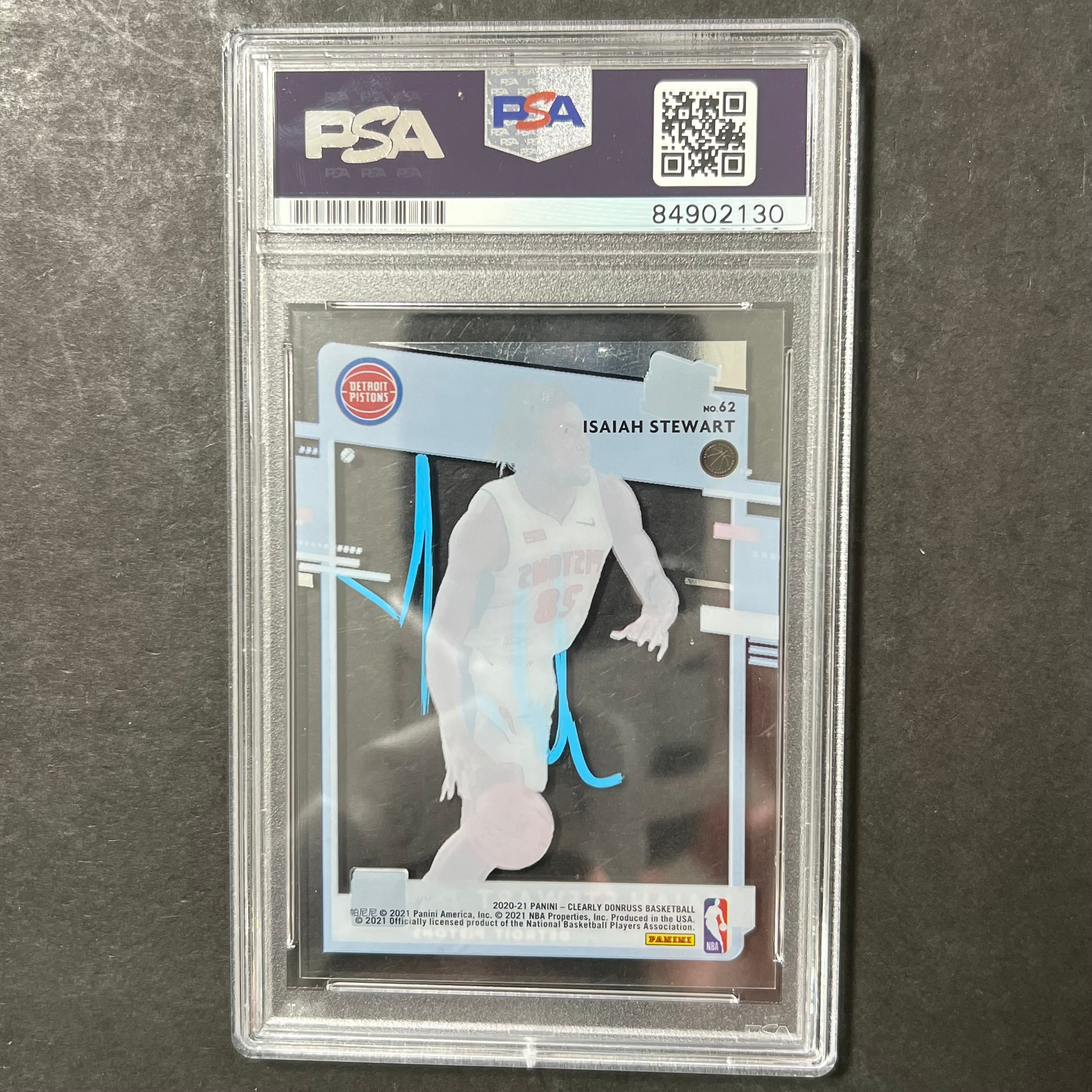 Up for sale is a 2020-21 Panini Clearly Donruss #62 card signed by Isaiah Stewart who notably played for the Detroit Pistons. The autograph of Isaiah on this card was authenticated by a team of experts at PSA/DNA Authentication Services (PSA/DNA) and encapsulated so you can rest assured you are purchasing the real deal.