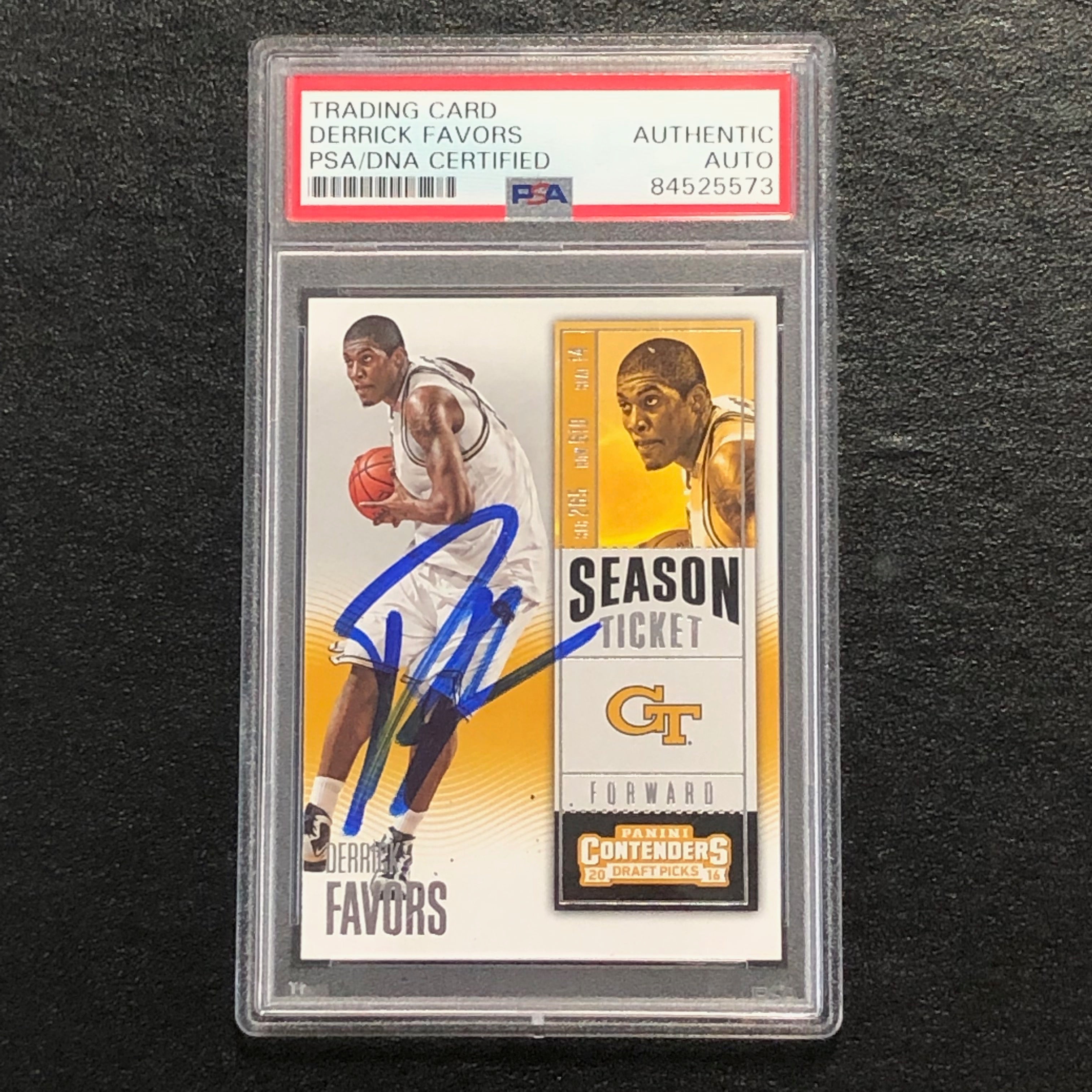 Up for sale is a 2015-16 Contenders Draft Picks #27 card signed by Derrick Favors of the Utah Jazz. The autograph of Derrick on this card was authenticated by a team of experts at PSA/DNA Authentication Services (PSA/DNA) and encapsulated so you can rest assured you are purchasing the real deal.