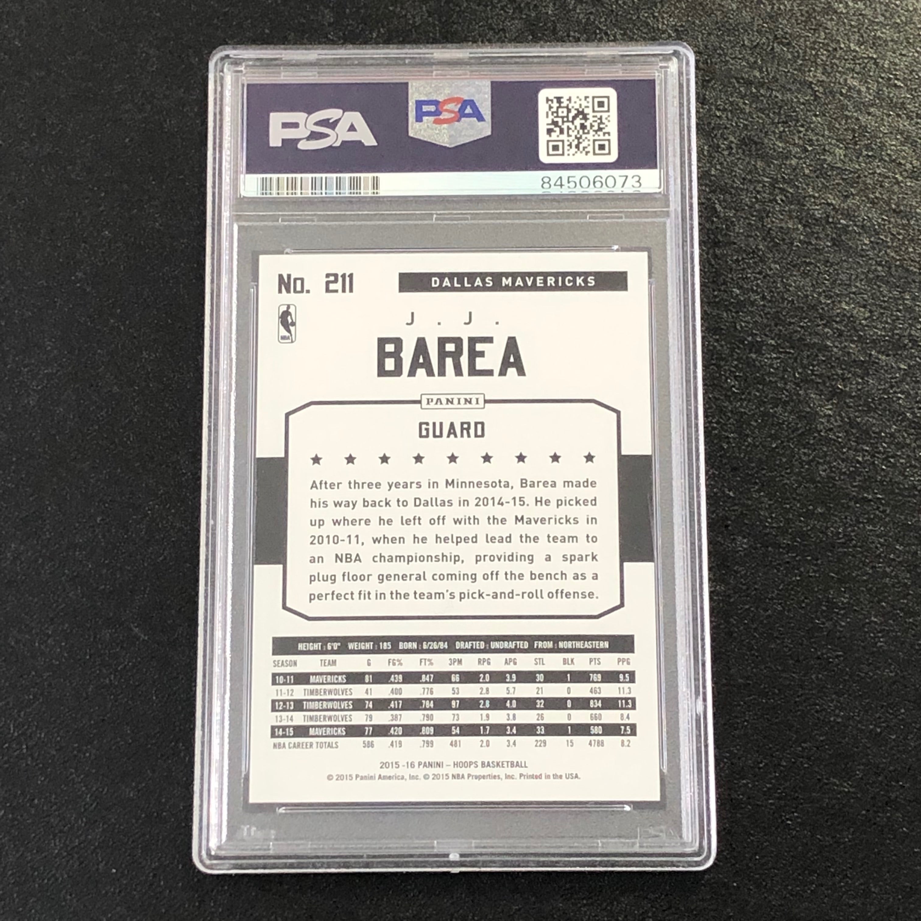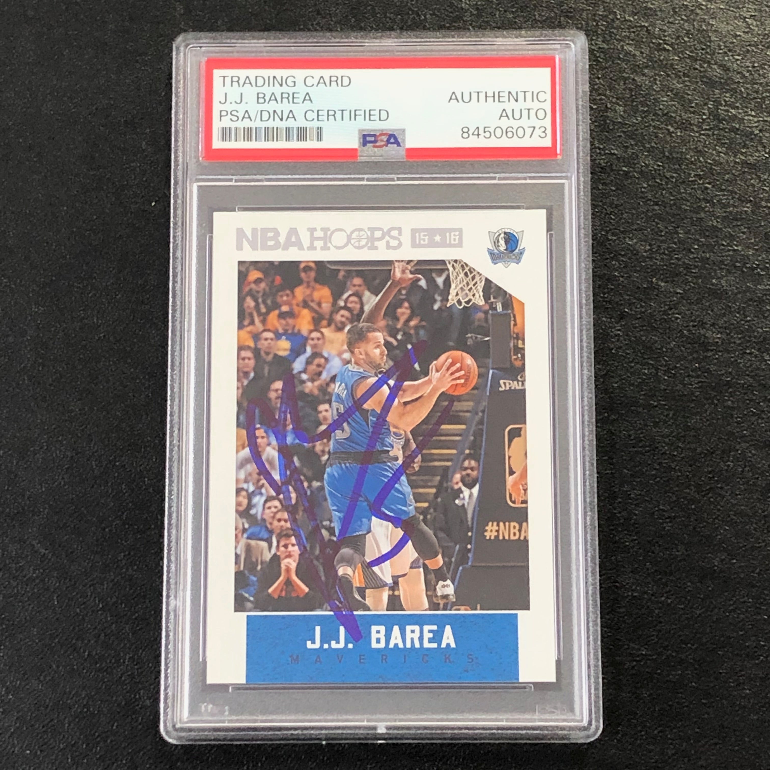 Up for sale is a 2015-16 NBA Hoops #211 signed by JJ Barea. The autograph of JJ on this card was authenticated by a team of experts at PSA/DNA Authentication Services (PSA/DNA) and encapsulated so you can rest assured you are purchasing the real deal.