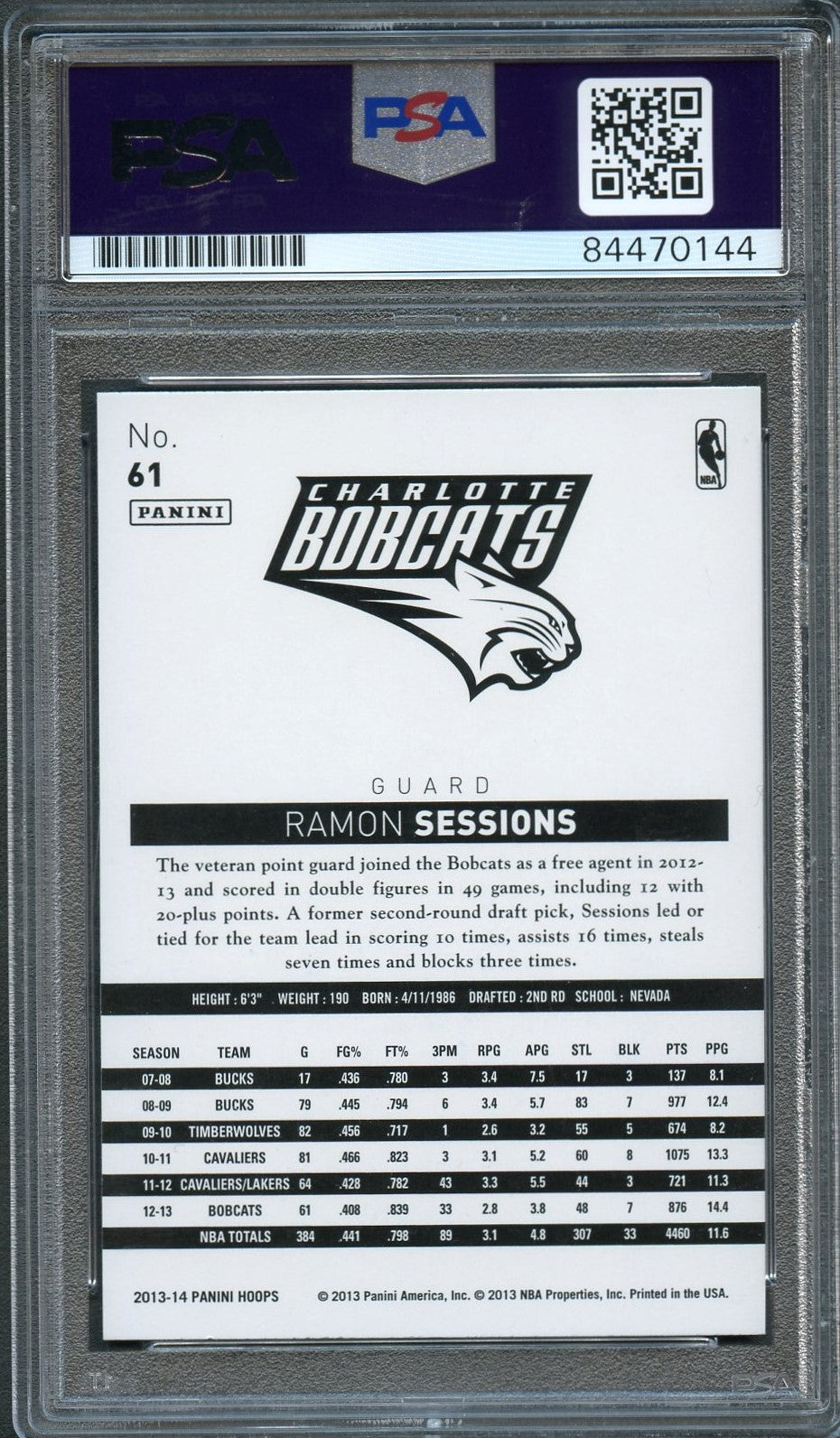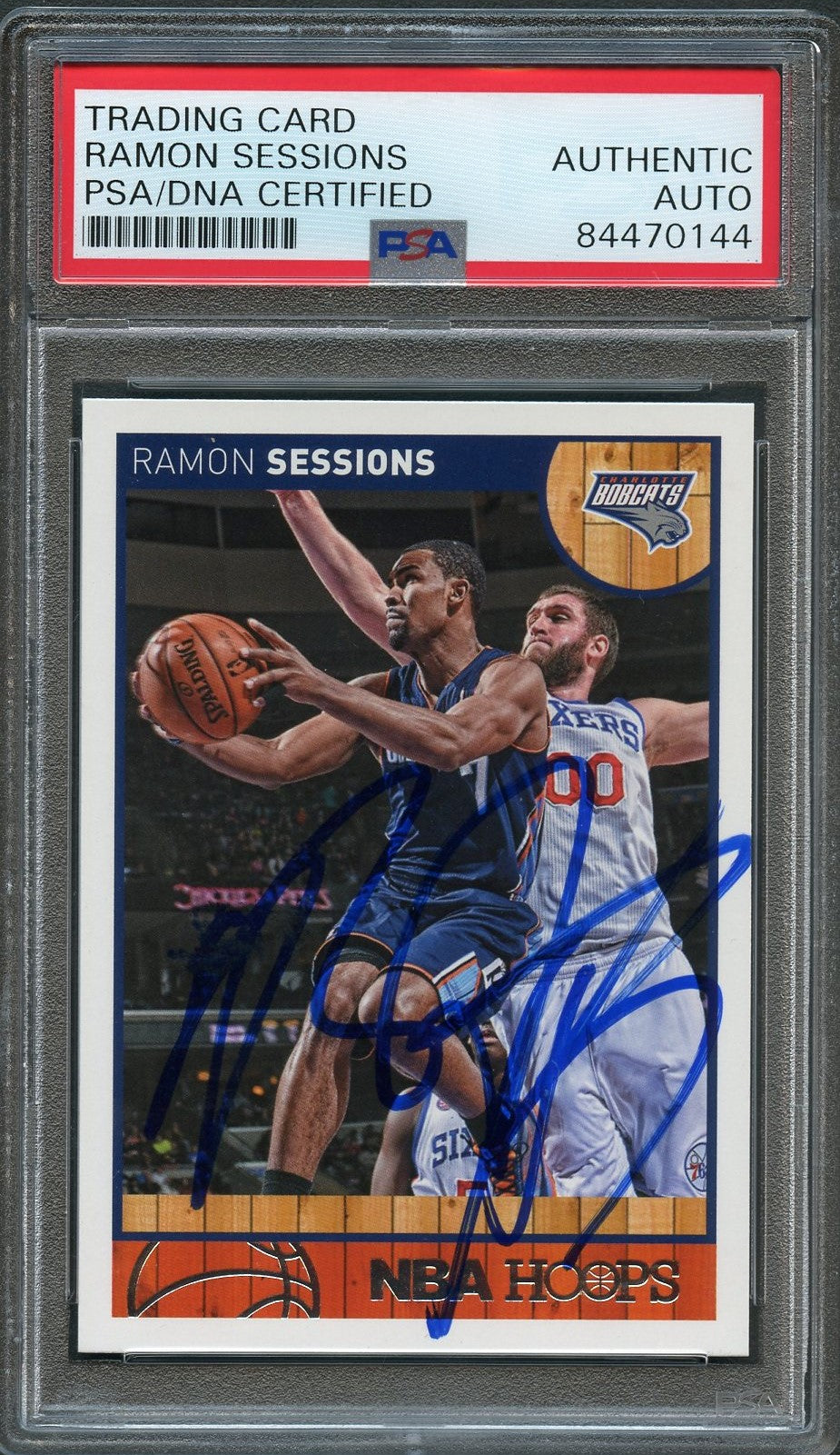 Up for sale is a 2013-14 NBA Hoops #61 card signed by Ramon Sessions who notably played for the Charlotte Bobcats. The autograph of Ramon on this card was authenticated by a team of experts at PSA/DNA Authentication Services (PSA/DNA) and encapsulated so you can rest assured you are purchasing the real deal.