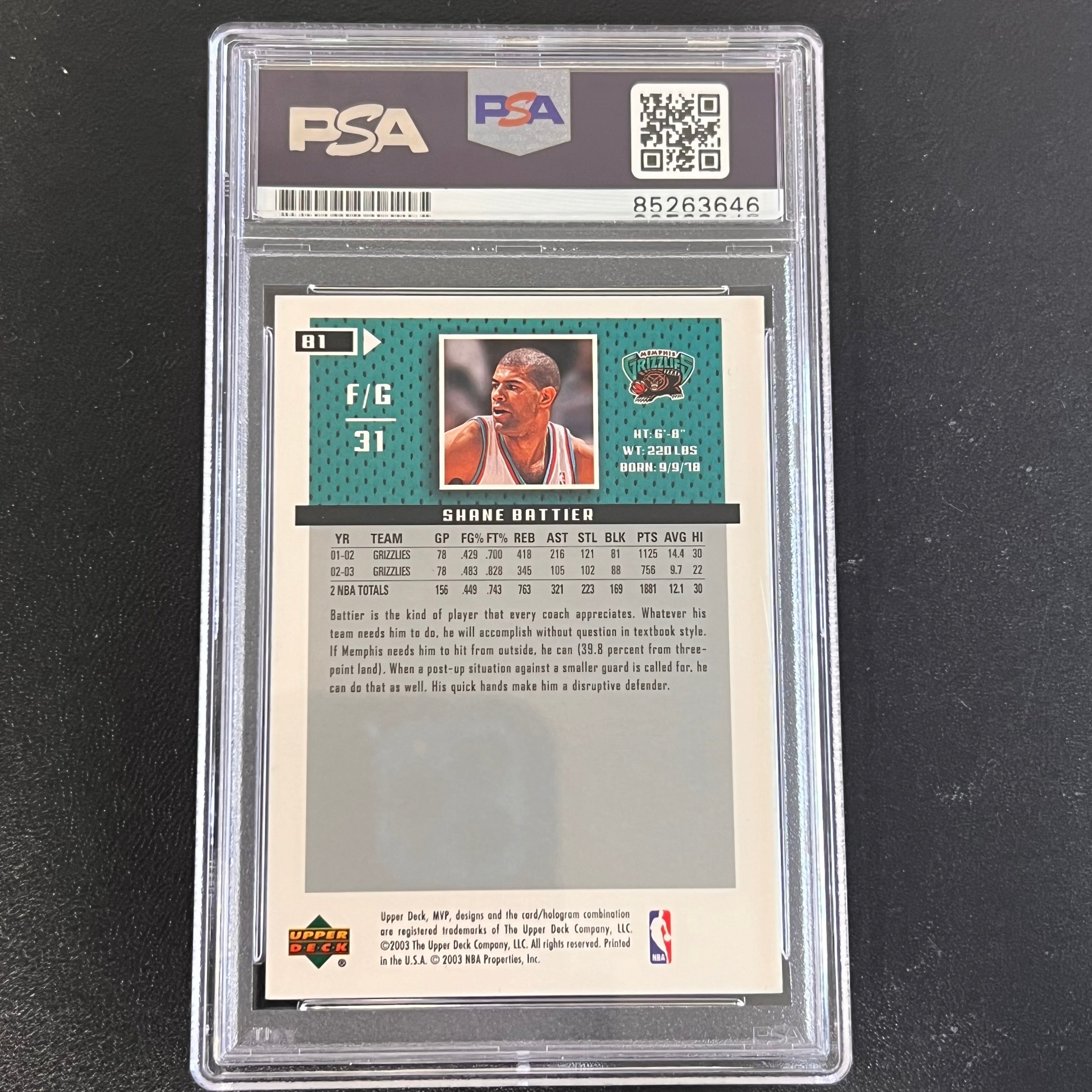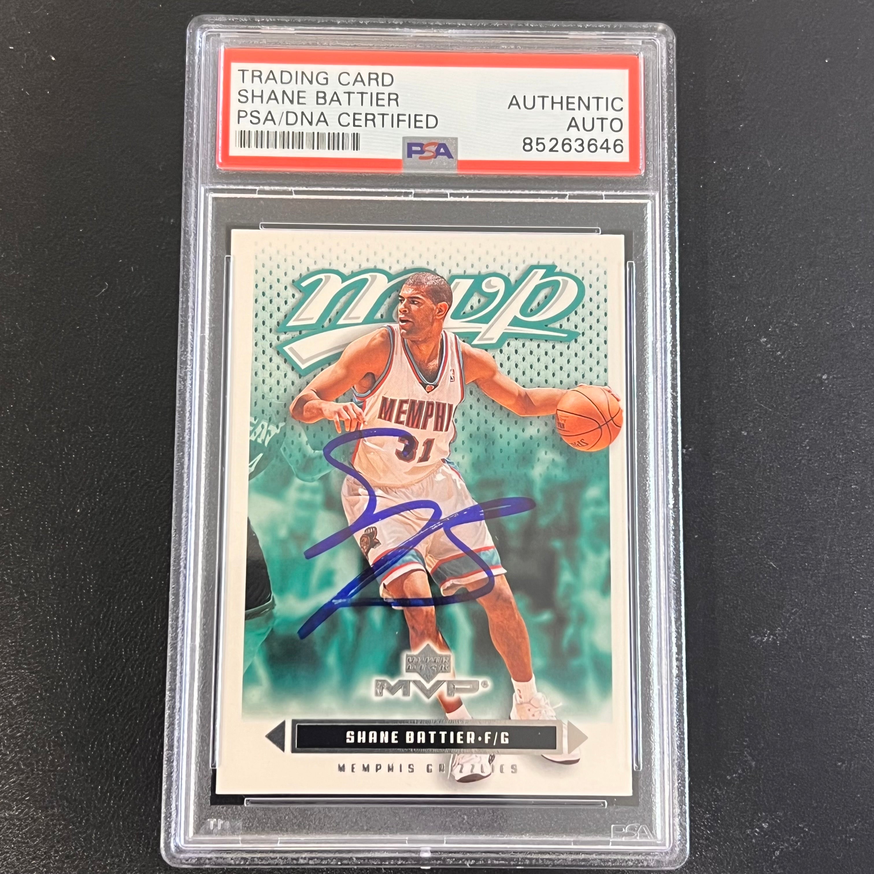 Up for sale is a 2003 Upper Deck MVP #81 card signed by Shane Battier. The autograph of Shane on this card was authenticated by a team of experts at PSA/DNA Authentication Services (PSA/DNA) and encapsulated so you can rest assured you are purchasing the real deal.